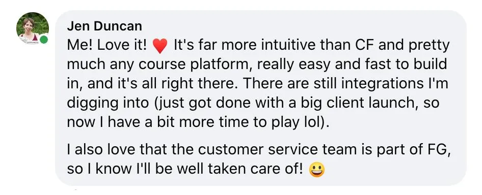 We have 24/7 customer support inside the app. We offer live chat 11am EST - 7pm EST inside our app. We do 5 days of live office hours per week, a user only FB group, our amazing FGF University course, email support, and a community of marketers that you can crowdsource and/or hire if you want!