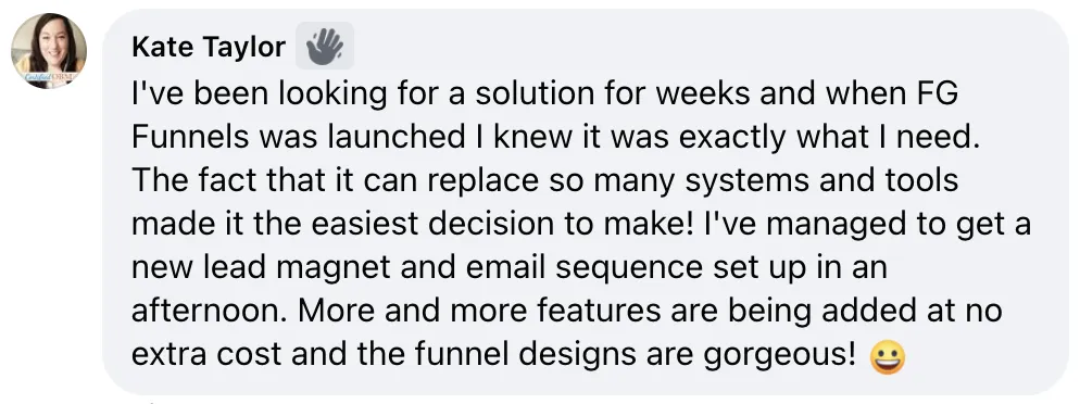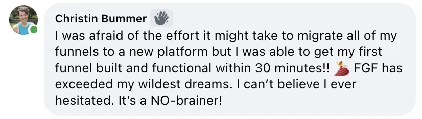Still not yet a believer? Check out our Move to Gorgeous program. It's FREE and we will get you migrated together from your current system over to FG Funnels®.